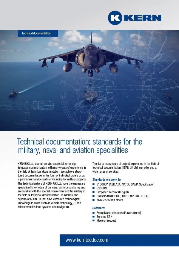 Technical documentation in the military, naval and aviation sectors information sheet