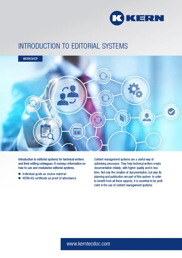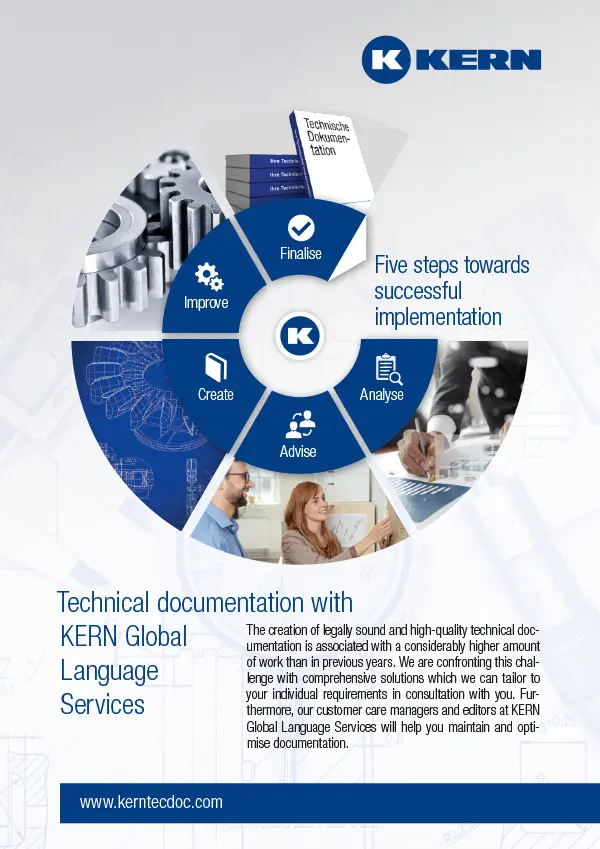 For the creation and content management of technical documentation, the KERN Group provides a content management solution as Software as a Service (SaaS) for technical editing, which enables access to the content management and editing software anytime, anywhere, and offers a cost-effective, location-independent service.