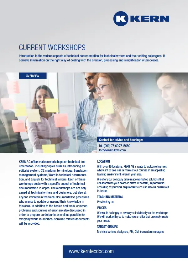 Brochures, information sheets and workshops on technical documentation